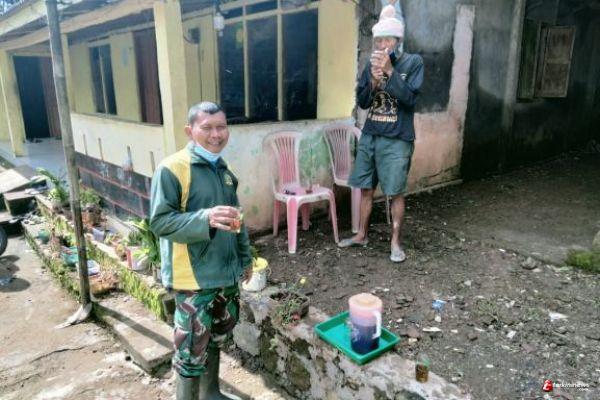 Kabupaten Semarang-Sebagai wujud keharmonisan antara Satgas TMMD 110 Kodim 0714/Salatiga dengan warga masyarakat terlihat jelas saat istirahat menikmati cemilan dan air teh di lokasi TMMD di Desa Ketapang, Kecamatan Susukan Kabupaten Semarang , Minggu (28/03/2021).