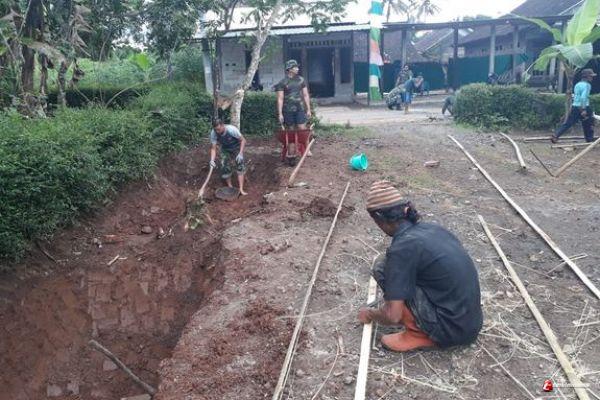 Kab semarang-Secara bergotong-royong personel TMMD (TNI Manunggal membangun Desa) ke- 110 Memotong bambu untuk Reng di Desa ketapang, Kecamatan susukan , Kabupaten semarang . Minggu (28/03/2021)