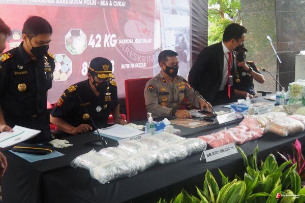 Direktorat Tindak Pidana Narkoba Bareskrim Polri menggagalkan peredaran narkoba sabu seberat 42,337 Kilogram (Kg) dan 85.038 butir ekstasi. Itu merupakan hasil operasi gabungan bersama Bea Cukai.
