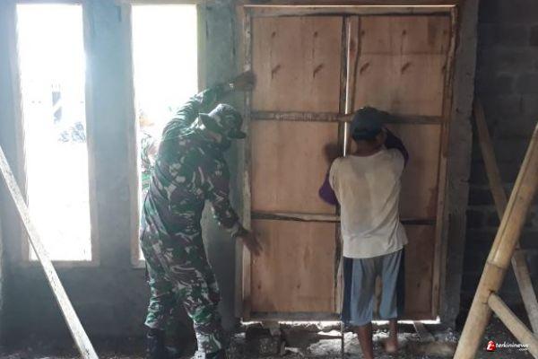 Diantaranya Rumah tidak layak huni ( RTLH ) bertempat di Rumah bapak Suwarno ( 50 ) terlihat sedang memasang pintu darurat dan di bantu salah satu personil satgas TMMD Sertu Supriono ( 41 ) Anggota Satgas TMMD dan masyarakat tidak dapat di pisahkan selalu bersama sama dalam setiap pekerjaan.
