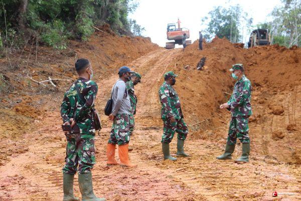 Pengkadan - Sasaran fisik, pekerjaan pembangunan pembukaan jalan, pembuatan jembatan serta gorong-gorong yang dikerjakan oleh Satgas TMMD ke-110 Kodim 1206/PSB seluruhnya hampir rampung. Program TMMD Ke 110 Kodim 1206/PSB di laksanakan di Dusun Tintin Kemantan, Desa Hulu Pengkadan, Kecamatan Pengkadan, Kabupaten Kapuas Hulu. Sabtu, (27/03/2021)