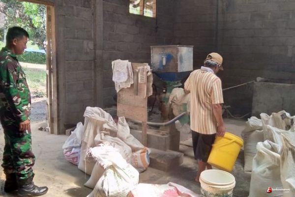 Kali ini anggota satgas TMMD ke-110 Kodim 0714/Salatiga Serda Supriyono membantu proses penggilingan di Dusun Sari Mulyo Rt 05 Rw 05 Desa Ketapang.