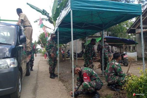 Pemasangan tenda di lokasi TMMD para anggota Satgas TMMD, Masyarakat dan perangkat desapun, ikut berperan aktif dalam pada kegiatan tersebut.