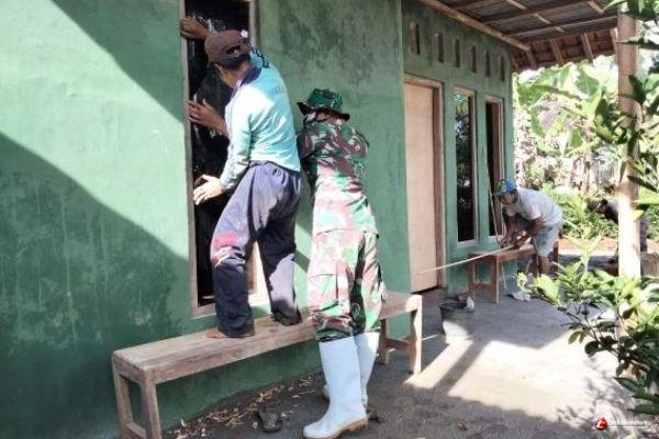 Kabupaten Semarang - Satgas TMMD ke-110 Kodim 0714/Salatiga bersama warga bergotong - royong memasang jendela rumah milik bapak Sumarna Di Desa Ketapang RT 04 RW 05, Kecamatan Susukan Kabupaten Semarang.