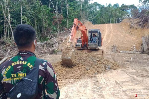 Satgas TNI Manunggal Membangun Desa (TMMD) 110 Kodim 1206/Putussibau terus memacu dua alat berat yang digunakan untuk membangun infrastruktur jalan penghubung dua desa berbeda Kecamatan di Desa Hulu Pengkadan, Kecamatan Pengkadan, Kabupaten Kapuas Hulu.