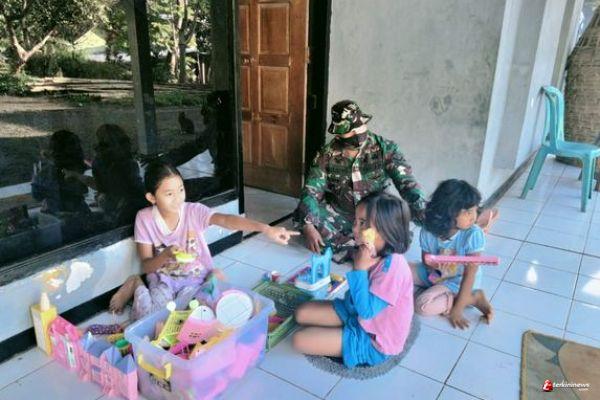 Kabupaten Semarang - Jauh dari keluarga menjadi hal biasa di dalam tugasnya menjadi Satgas TMMD Regular ke 110 Kodim 0714/Salatiga. Kerinduan kepada keluarga menjadi lebih besar saat melihat anak anak seusia buah hati.