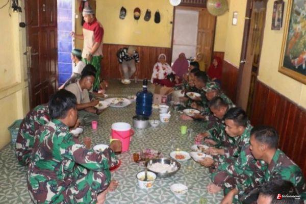 Sambil makan bersama, Bapak Solehudin dalam percakapanya menyampaikan bahwa makan bersama sebagai ucapan terima kasih, kepada TNI yang sedang membangun jalan, jembatan dan fasilitas lain di dusun.