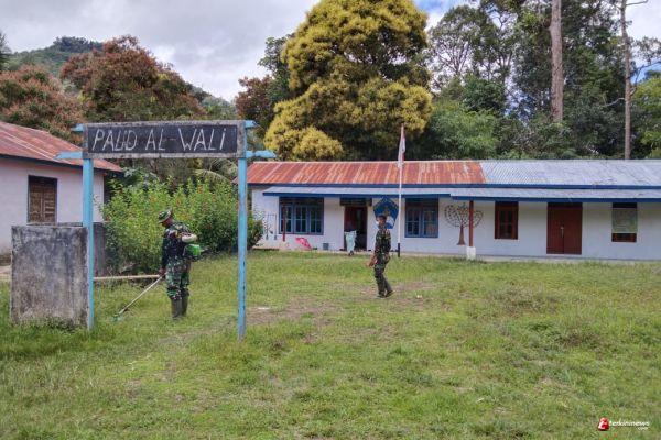 Satgas Kodim 1206/PSB Bersihkan Halaman Sekolah Paud
