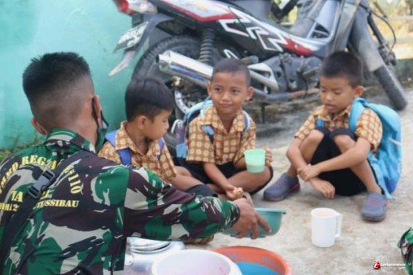 Satgas TMMD Ke 110 Kodim 1206/PSB Isi Waktu Istirahat Bersama Anak- Anak