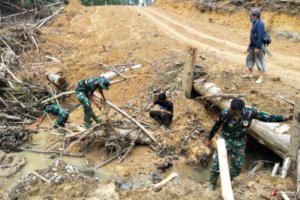 Pengkadan- anggota Satgas TMMD ke-110 Kodim 1206/PSB bergotong royong bersama masyarakat melaksanakan pembersihan gorong gorong di Dusun Tintin Kemantan, Desa hulu Pengkadan, kecamatan Pengkadan, kabupaten Kapuas hulu.