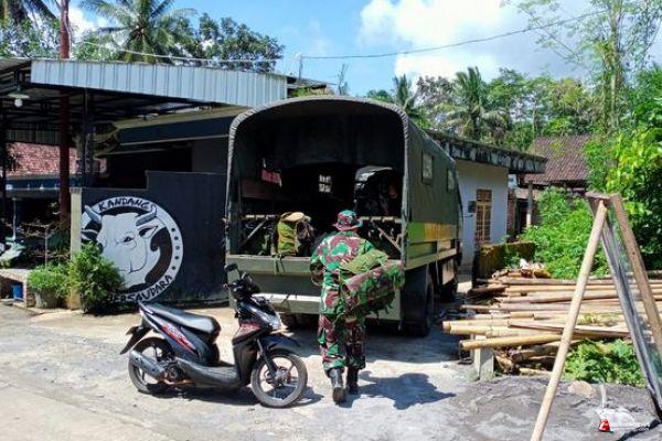 Dijemput dengan truk dari kesatuan, para Anggota Satgas TMMD yang berasal dari Batalyon 410/Alugoro Blora, bersiap untuk kembali ke home basenya.