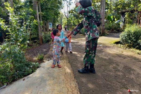 Kabupaten Semarang- Program TMMD di Desa Ketapang,Kecamatan Susukan telah resmi ditutup hari Rabu 31 maret 2021, dan semua program pengerjaan di program TMMD sudah selesai dikerjakan, maka anggota Satgaspun menyempatkan berpamitan dengan anak-anak.