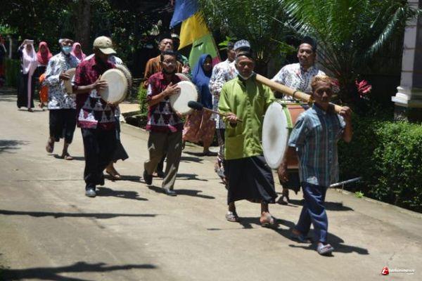Kabupaten Semarang - Warga Desa Ketapang mengiringi kepulangan anggota satgas TMMD dengan tetabuhan rebana. Sebentuk ucapan terimakasih dan selamat jalan dari warga Desa Ketapang kepada anggota satgas yang akan kembali menuju ke home basenya masing-masing.