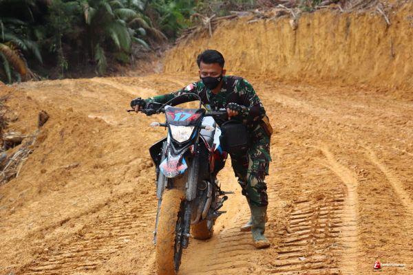 Jalan Yang Sulit Dilewati Bukan Halang Untuk Personil Penerangan Kodim Dalam Meliput Kegiatan TMMD Ke 110 Kodim 1206/PSB