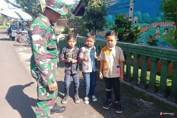 Keramahan Anggota TNI Juga Di Rasakan Anak Anak Ketika Istirahat Siang