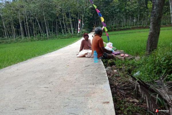 Kabupaten Semarang - Patmo (65) Warga Desa Ketapang Bersama Anto (53) Luar biasa sedang menikmati hasil karya anggota TMMD. Dengan Warga beristirahat di pinggir jalan sehabis di cor ,Sambil berbincang setelah dari pagi melaksanakan bertani.
