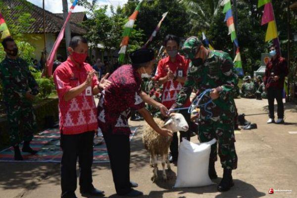 Perasaan haru dan bangga terlihat dari wajah para Perangkat Desa dan Kepala Desa Ketapang saat menyerahkan satu ekor kambing kepada Komandan Satgas.