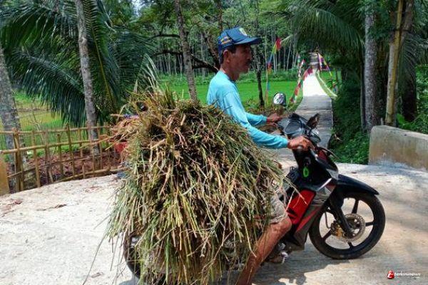 Seperti halnya pagi hari ini,terlihat warga Dusun Sarimulyo yang sedang membawa pakan ternak dari sawah,mereka terlihat gembira karena bisa dengan lancar membawa pakan ternak melalui jalan baru yang habis di bangun.