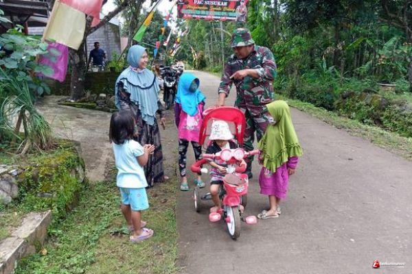 Dalam pengecekanya di lokasi,salah satu Anggota Koramil 07/Susukan itu menyempatkan menjumpai warga dan sejumlah anak yang terlihat di jalan untuk sekedar ngobrol.