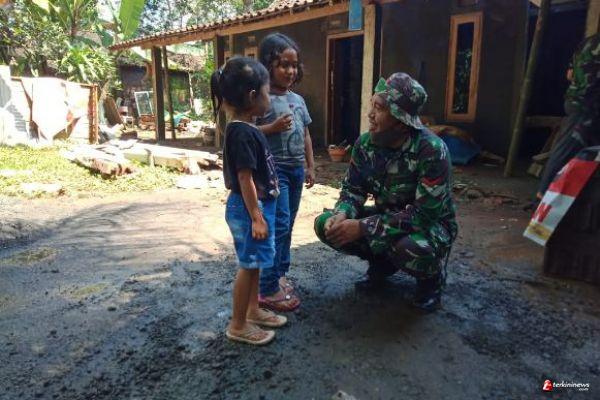 Kopda Susmoko (35) Babinsa Koramil 07 Susukan Kodim 0714/Salatiga Setelah melaksanakan pengecekan RTLH rumah Jumali (51) Salah satu warga mendapatkan rehab rumah. Sambil Bercengkrama bersama Ani (5) Seorang anak warga Desa Ketapang.TNI sudah tidak bangun rumah lagi tanya Ani terhadap Kopda Susmoko. TNI Sudah pada pulang karena sudah selesai membantu disini.sekarang tinggal Babinsa aja.