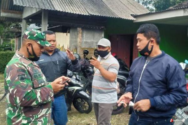Jurnalis Kodim 0714/Salatiga nampak saat berkoordinasi di depan Balai Desa Ketapang untuk menghimpun berita perkembangan Desa Ketapang pasca selesainya program TMMD, Jum'at (02/04/2021)