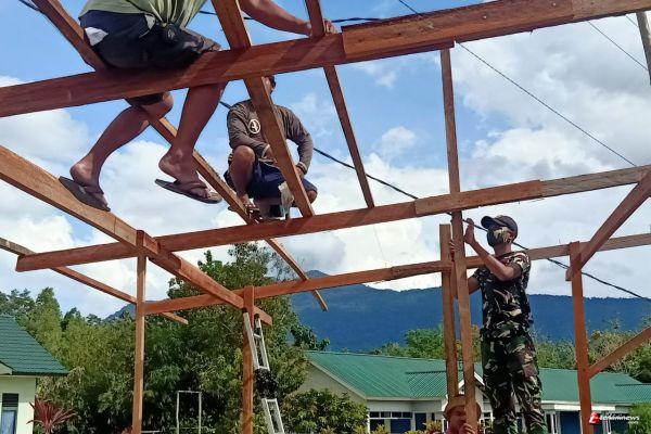 Lebih lanjut disampaikannya, agar memberikan kenyamanan saat beribadah dan mendukung aktivitas di masjid menjelang bulan suci Ramadhan, lima personel Pos Langau 1 dipimpin Serda Diaz bersama warga melaksanakan pembuatan atap depan Masjid.