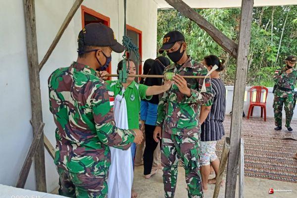 Satgas Pamtas RI-MLY Yonif 407/PK bekerjasama dengan Puskesmas Puring Kencana menyelenggarakan kegiatan Pos Pelayanan Kesehatan Terpadu (Posyandu) di Desa Sungai Mawang, Kecamatan Puring Kencana, Kabupaten Kapuas Hulu, Kalbar.