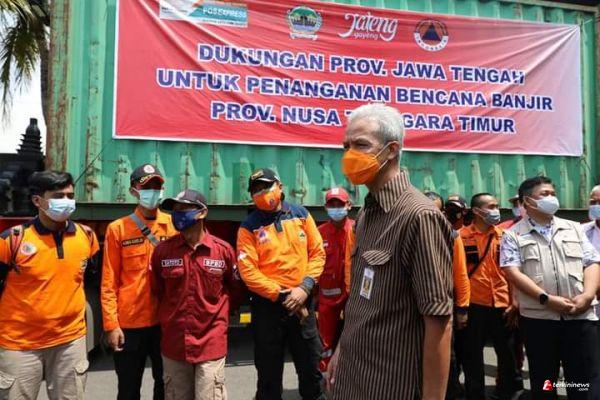 Gubernur Jawa Tengah, Ganjar Pranowo mengirimkan bantuan untuk penanganan korban bencana banjir bandang di Nusa Tenggara Timur (NTT). Sebanyak 18 relawan dan bantuan logistik sejumlah Rp503.760.000 diberangkatkan Ganjar dari Jateng ke NTT, Selasa (13/4).