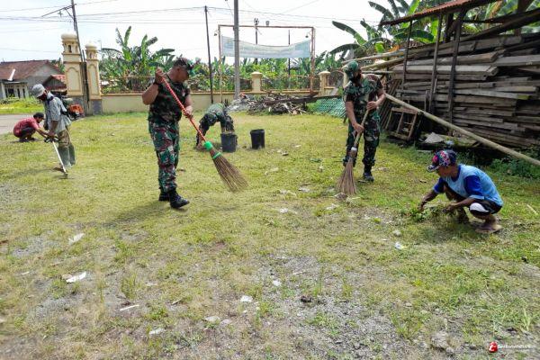 ''Dengan menggunakan peralatan dan juga tangan, anggota Koramil Warungasem bersama masyarakat memotong dan mencabuti rumput-rumput yang sudah tumbuh di halaman Masjid," ujar Danramil