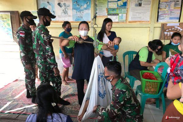 Kepedulian Akan kesehatan Balita Satgas Pamtas Yonif 407/PK Bantu Bidan Desa Muakan