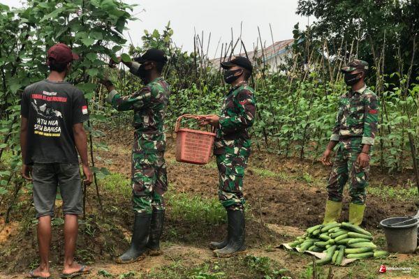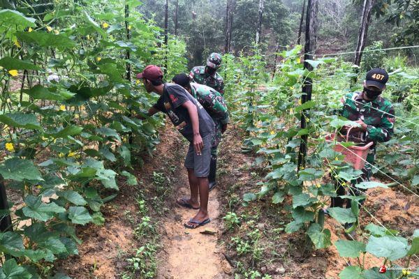 Percepat Proses Panen, Satgas Yonif 407/PK Membantu Panen Timun