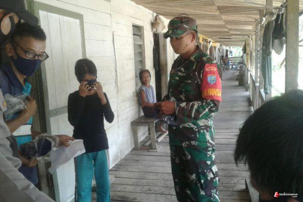 Aksi Babinsa 1206-05/Embaloh Hulu Bagikan Masker Upaya Memberikan Kesadaran Kepada Warga