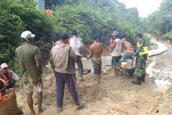 Babinsa Membantu Masyarakat Membangun Akses Jalan Antar Dusun