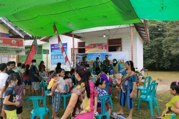 Putussibau - kegiatan babinsa Koramil 1206-06/Putussibau Utara Kopda Zaine bersama Babinkatimas hadiri acara pengobatan Kesehatan gratis yang diselenggarakan oleh Dinkes Putussibau Di Desa Tanjung Lokang.