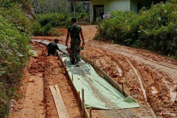 Bangun Semangat Kebersamaan Koramil 1206-11/Silat Hilir Dan Warga Laksanakan Gotong Royong