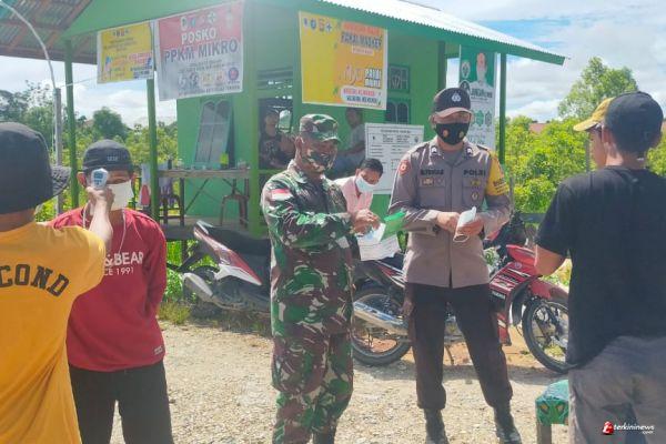 Lindungi Warga Dari Covid-19, Babinsa Koramil 1206-08/Bunut Hilir Bagikan Masker Gratis