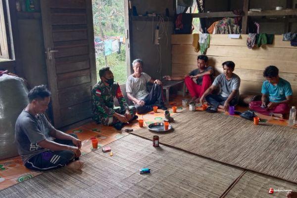 Martinus - Babinsa Koramil 1206 - 05/Embaloh Hulu ,Kodim 1206/Putussibau Kopda Bambang, Melaksanakan Komsos (Komunikasi sosial)dengan tokoh Masyarakat di Desa Saujung Giling Manik, kecamatan Embaloh Hulu, Kabupaten Kapuas Hulu. Minggu (23/05/2021).
