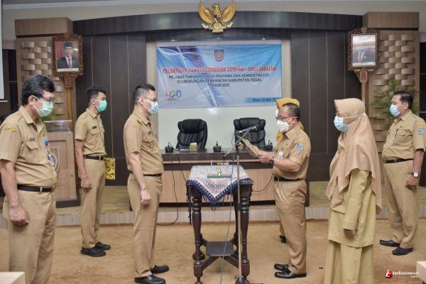 TEGAL– Sikap independen dan profesional menjadi nilai yang harus dijunjung tinggi setiap aparatur pengawas internal pemerintah. Pernyataan tersebut disampaikan Wakil Bupati Tegal Sabilillah Ardie saat memimpin pelantikan dan pengambilan sumpah jabatan inspektur dan inspektur pembantu di Ruang Rapat Bupati, Selasa (25/05/2021) pagi.
