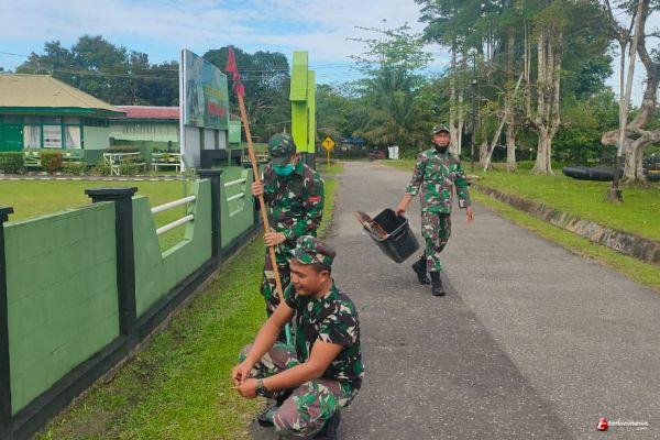 Jaga Kebersihan, Personil Kodim 1206/PSB Laksanakan Pembersihan Di Makodim