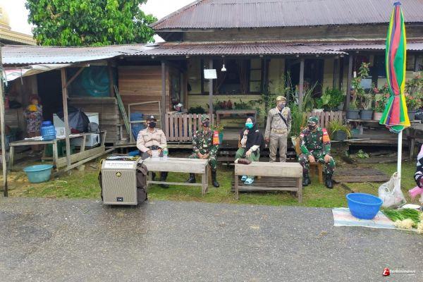 Babinsa Kodim 1206 - 02/Semitau Bersama satgas covid19 dalam melaksanakan sosialisasi tentang pencegahan covid-19 juga dilakukan melalui komunikasi sosial (Komsos) di Lingkungan Pasar Tumpah, Desa Semitau Hulu, Kecamatan Semitau, Kabupaten Kapuas Hulu. Minggu (23/05/2021).
