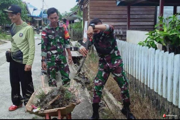 Sampah yang menumpuk di dalam selokan cukup banyak, sehingga aliran selokan tidak lancar, warga kemudian membersihkan sampah yang telah berwarna hitam pekat dari selokan dan tumpukan sampah. Dalam rangka menimbulkan kesadaran masyarakat akan pentingnya kegiatan gotong royong, sekaligus membersihkan saluran air atau Drainase yang selama ini dikeluhkan warga karena banyaknya sampah dan tanah yang menumpuk di aliran selokan tersebut.” Ungkap Danramil Pelda Jumadi.
