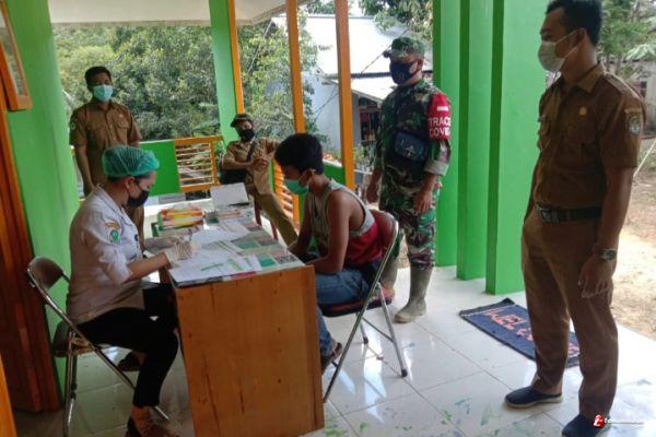 Dalam upaya memutus mata rantai penyebaran covid-19, Babinsa Koramil 1203-10/Sandai bersama petugas kesehatan dari Puskesmas Hulu Sungai melaksanakan tracking dan swab antigen yang bertempat di Puskesmas Hulu Sungai, Kec. Hulu Sungai, Kab. Ketapang, Selasa (25/5/2021).