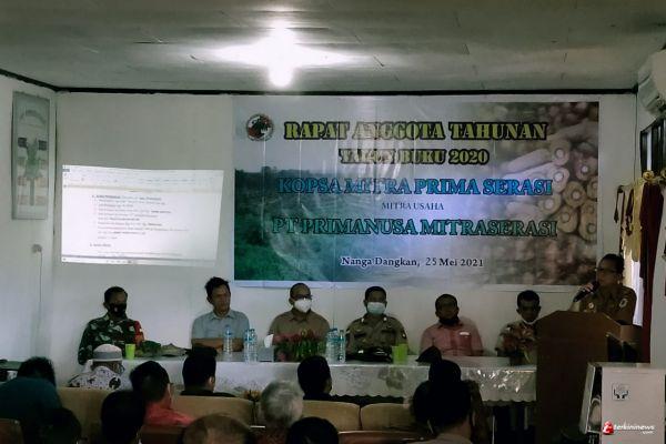 Nanga Dangkan - Koperasi Bersama Mitra Prima Serasi Silat Hulu menggelar acara Rapat Anggota Tahunan (RAT) tutup buku Tahun 2020, PJ Danramil 17/Silat Hulu, Serka Adias beserta 2 Orang Anggota ikut hadiri Rapat anggota Tahunan Koperasi Mitra Prima Serasi tutup Buku Tahun 2020 di Aula Kantor Desa Nanga Dangkan, Selasa (26/05/2021).