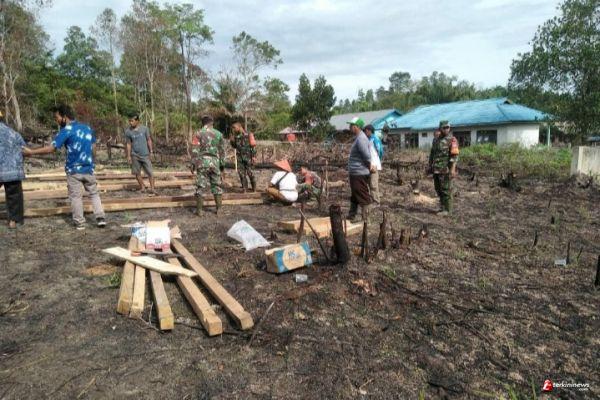 Hari ini anggota Koramil 1203-07/Marau bersama warga bergotong-royong membangun salah satu rumah warga yang belokasi di Dusun Rantau Panjang Desa Sukaharja Kecamatan Singkup Kabupaten Ketapang, Jum’at (28/5/2021)