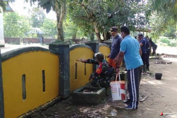 Disela pengecatan Babinsa Simpang Tiga Sembilangan Serda Agus Widodo mengatakan, melalui kegiatan gotong royong ini akan tercipta rasa kebersamaan, kekeluargaaan dan kerjasama antara aparat dan warganya.