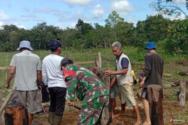 Manunggal Dengan Rakyat, Babinsa 1206 - 01/Embaloh Hilir, Bantu Warga Binaan Penancapan Pondasi Rumah.