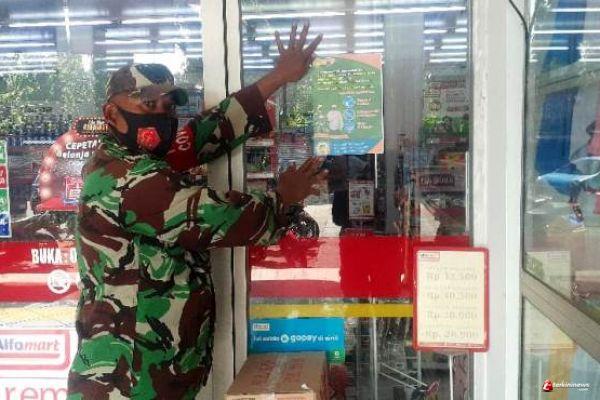 BREBES– Para Babinsa Koramil di jajaran Kodim 0713 Brebes, masih memasang pamflet himbauan protokol kesehatan covid-19 di tempat-tempat yang menjadi pusat kerumunan masyarakat seperti pertokoan, pasar, minimarket atau pusat perbelanjaan, tempat ibadah, Anjungan Tunai Mandiri (ATM), dan SPBU.