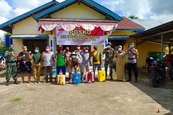 Putuskan Penyebaran Covid-19, Babinsa Koramil 1206 - 17/Silat Hilir, Bersama Satgas PPKM Semprot Disinfektan