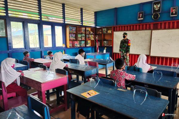Putussibau Selatan - Untuk mendukung kegiatan belajar mengajar dan memastikan menerapkan protokol kesehatan untuk mencegah dan memutus rantai penyebaran Covid-19, Koramil 1206-06/Putussibau Utara Serda Firdaus Dakun mengecek kesiapan sekolah yang akan melaksanakan pelajaran Di SDN 01 Putussibau, Kabupaten Kapuas Hulu. Rabu (03/07/21)