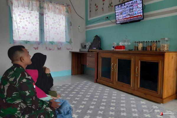 Putussibau - TNI AD Seluruh Kompleks Kodim 1206/Psb melaksanakan Pengibarkan bendera merah putih dan menyaksikan siaran langsung Pidato Presiden Ir. Joko widodo pada hari Lahirnya pancasila, Selasa (01/06/21)